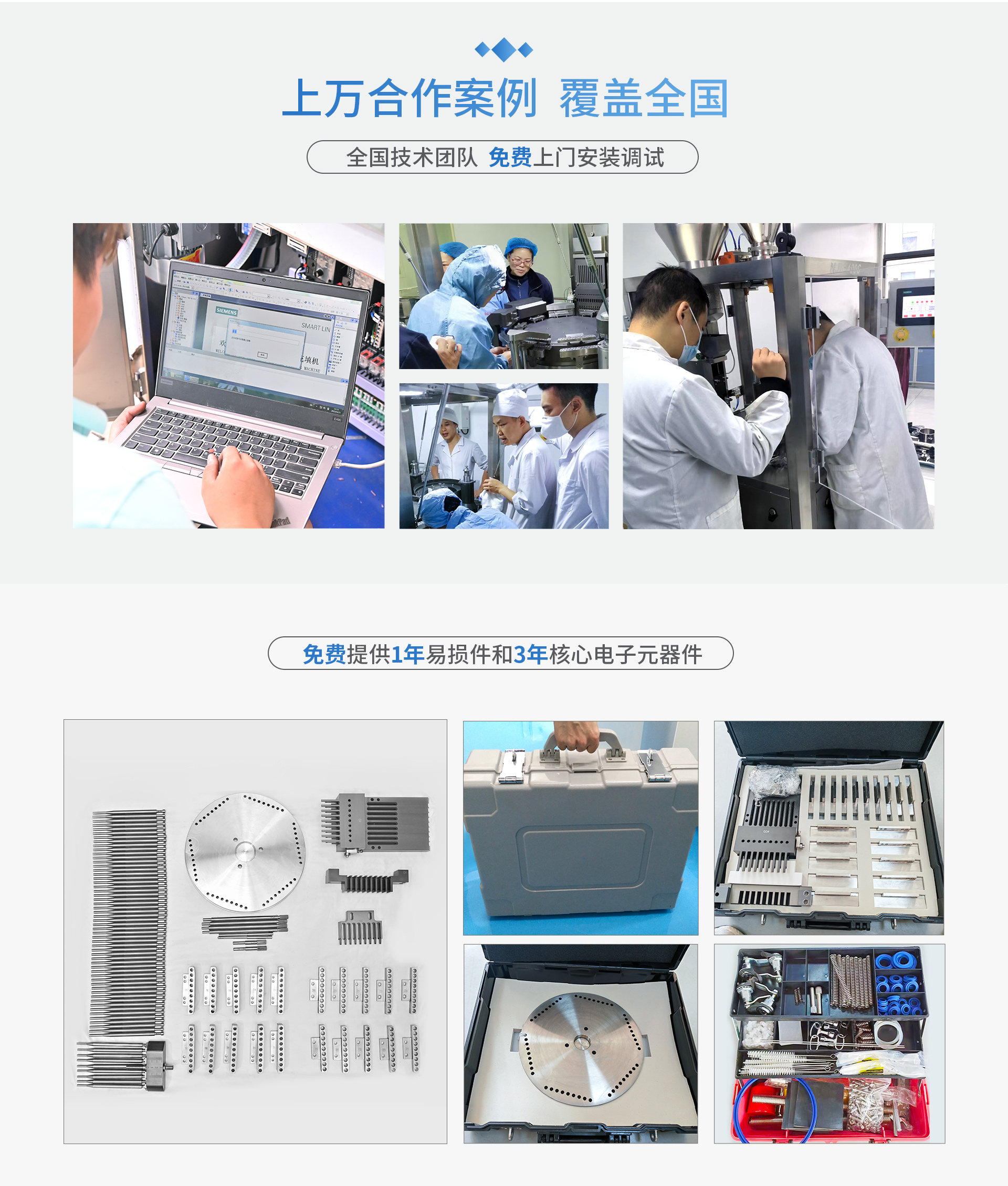 可以將粉狀、顆?;蛐∑任锪铣涮钪量招哪z囊(000#、00#、0#、1#、2#、3#、4#、5#)。全自動播囊、創(chuàng)新水平鎖囊,生產(chǎn)效率高,符合GMP要求,是充填中西藥、保健品的理想設(shè)備。