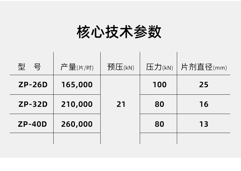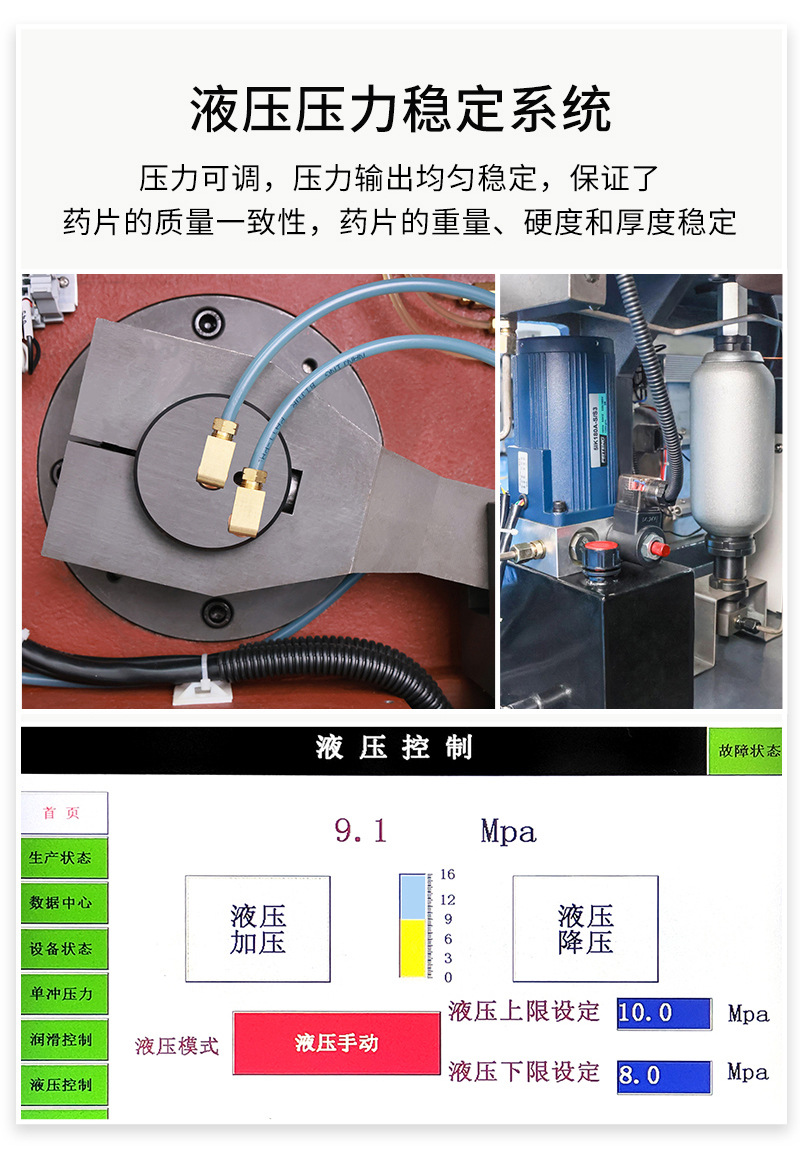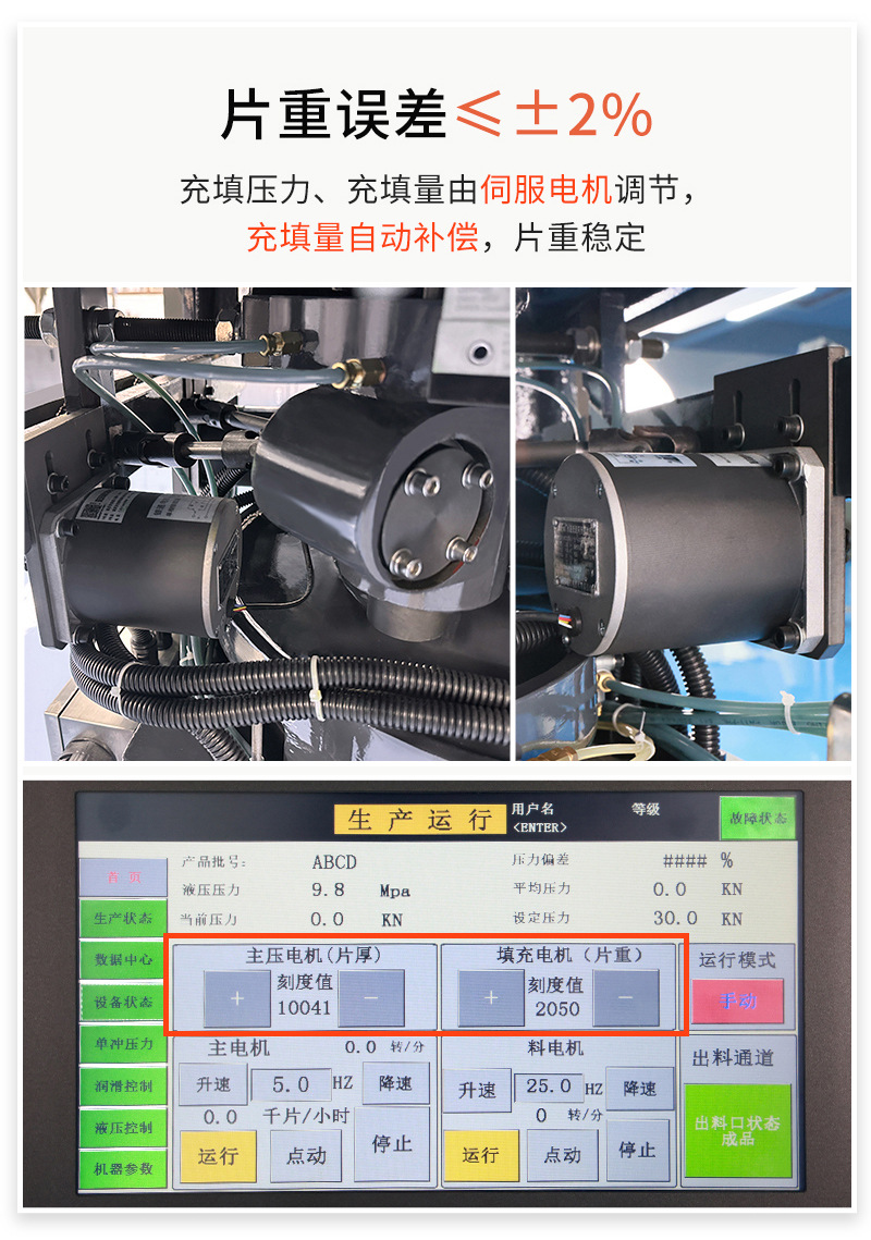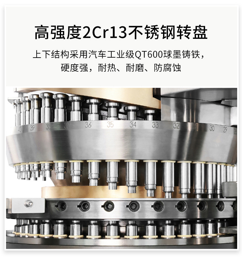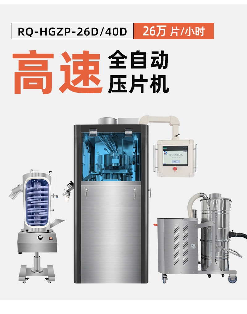 HGZP-26D/40D是一種將粉末和顆粒連續(xù)壓制成圓形片、異形片、雙色片、環(huán)形片的第七代全自動高速壓片機(jī),專門針對產(chǎn)量需求大的客戶,配置壓力液壓穩(wěn)定系統(tǒng),預(yù)壓壓力20KN,主壓壓力100KN,壓片直徑可達(dá)25mm,產(chǎn)量可達(dá)26萬片/小時。集粉末充填量自動調(diào)節(jié),壓力實(shí)時監(jiān)測,余粉循環(huán)利用,單片剔廢于一體的工業(yè)4.0版本的智能化設(shè)備。