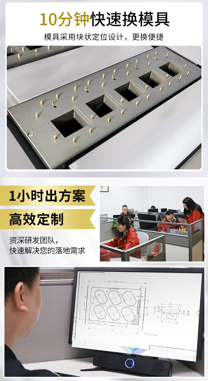 4、模具采用塊狀設(shè)計,更換模具方便簡單。