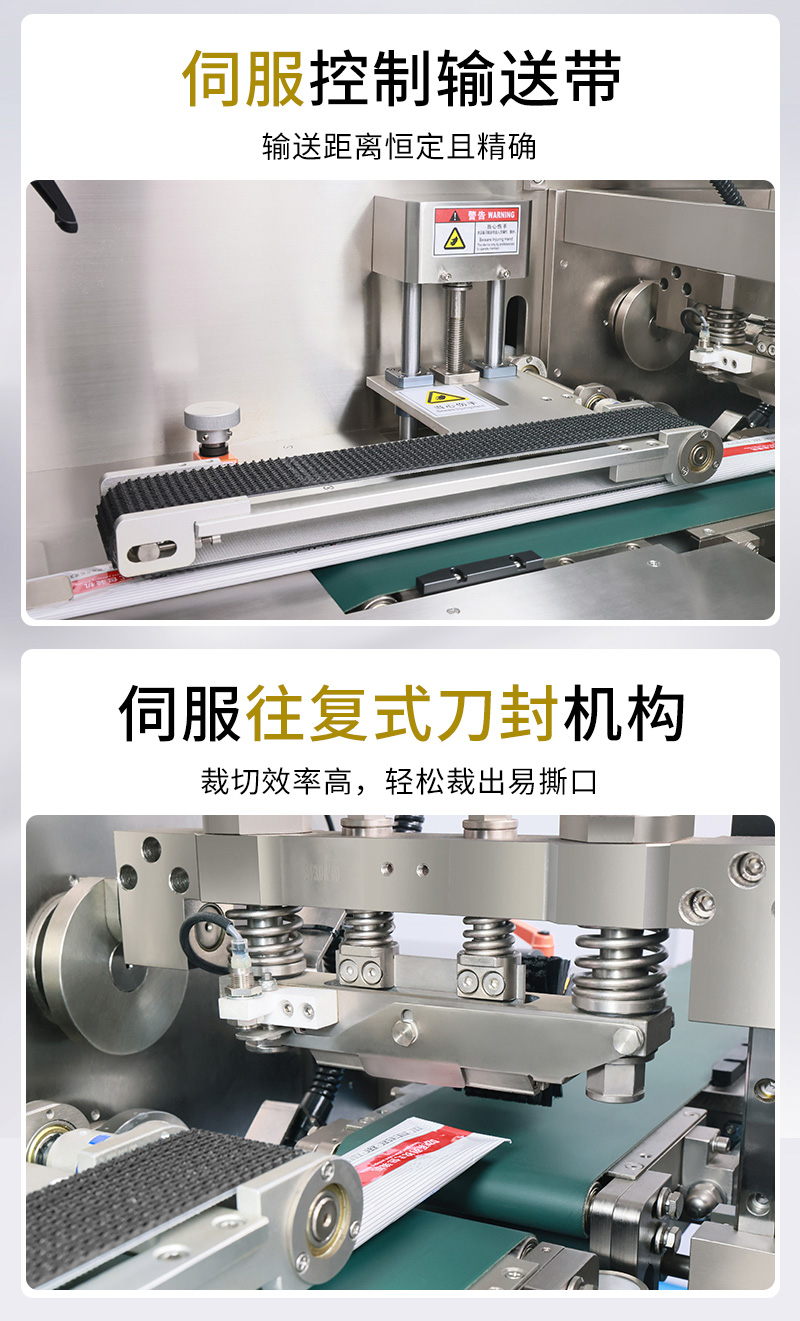 智能控制:獨(dú)創(chuàng)N+0運(yùn)動(dòng)+PLC伺服雙控,袋長(zhǎng)即時(shí)調(diào)節(jié),穩(wěn)定高效,節(jié)約包材。