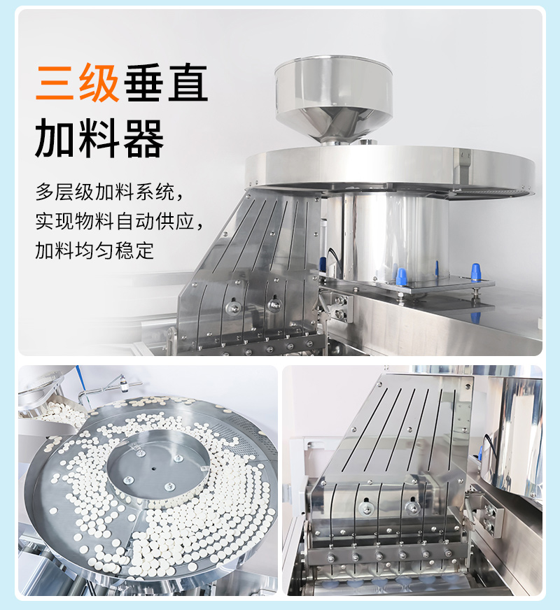 智能加料:三級(jí)垂直振蕩供料,滿料自停,粉塵過濾清潔。